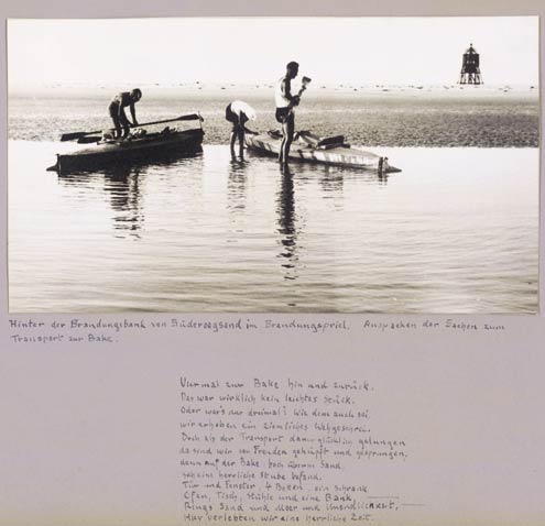 Hinter der Brandungsbank von Süderoogsand im Brandungspriel. Auspacken der Sachen zum Transport zur Bake.