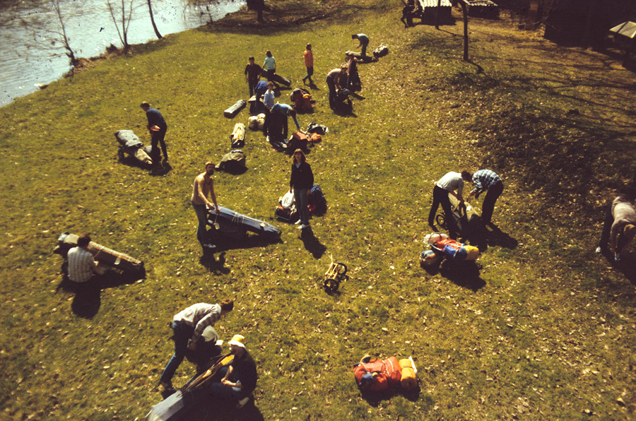 ZMF-Fahrer scheuen keine weiten Bahnreisen. Mitglieder der BSG Motor Stralsund waren den halben Tag mit der Reichsbahn unterwegs und genießen jetzt den Bootsaufbau an der frischen Luft.