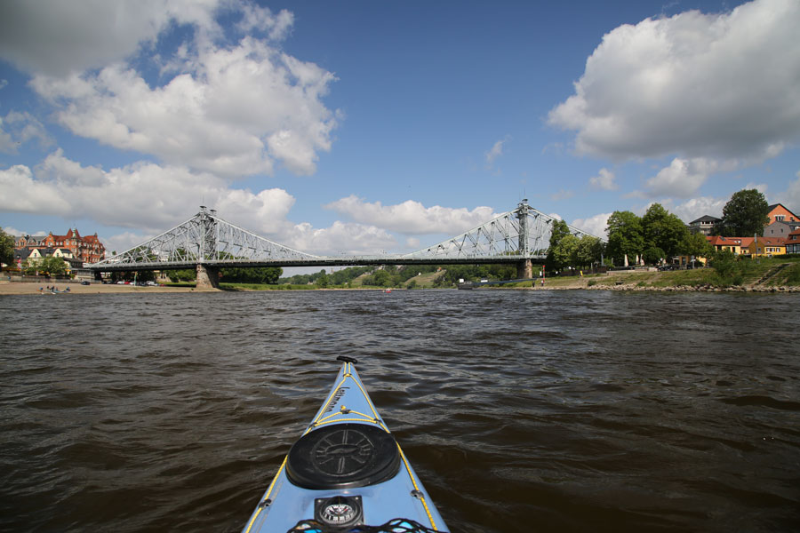 Vor mir liegt das "Blaue Wunder", 1893 als "König-Albert-Brücke" erbaut.