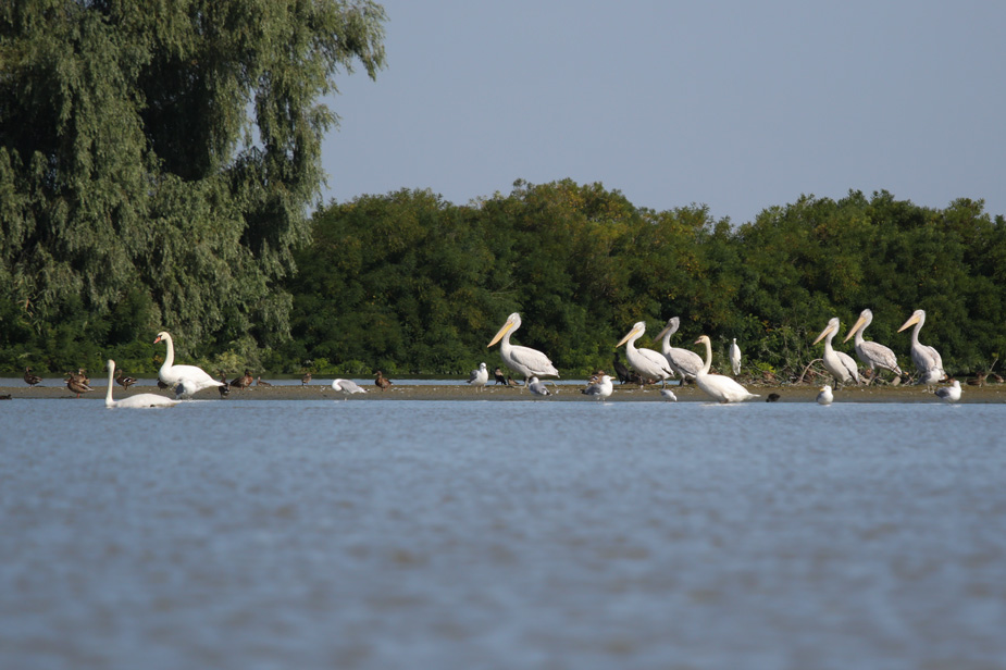 Abseits der im Hauptstrom rasenden Motorboote stoße ich in dieser Flussschleife auf Pelikane.