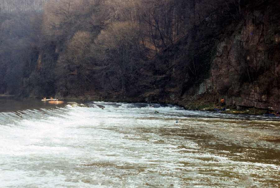 Auf der linken Seite lockt die Befahrung durch eine verblockte Strecke. Zuerst muss man hart am Felsen langfahren, um dann im letzten Moment in die Stromzunge einzuschwenken.