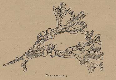 "Ja", sagte Inge und hob ein braunglänzendes lederartiges Tangbüschel auf, das wie ein Palmblatt aussah, "seht mal, hier unten hat der Tang ein Saugwurzelgeflecht, das sich an einem roten Sandstein festgesogen hat."
