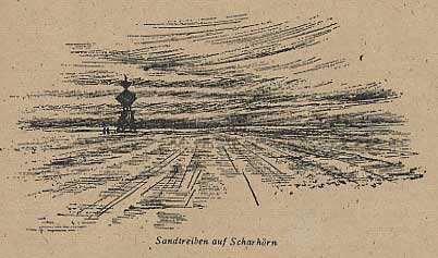 Am Morgen war der Himmel voll von jagenden Wolken. Noch immer trieb der Sand in langen Fahnen über Scharhörn. Der Wind blies kräftig aus Nordwest, und über der weißbrüllenden Brandung stand ein bleicher Nebel von Salzstaub. Sie beschlossen, zur Düne hinüberzugehen, wo die Arbeiterwohnhütte stand.