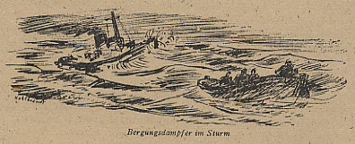 Die Männer waren mit mir zusammen bei dem Pächter zu Besuch, und bei einem dampfenden Grog - denn draußen war es kalt und ungemütlich - fragten sie mich, ob ich nicht mit ihnen nach Cuxhaven wolle. Ich war mit meinen Arbeiten fertig und hatte bei dem Wetter keine andere Gelegenheit, von der Insel so vorteilhaft wegzukommen. Zudem war die Verbindung von Cuxhaven nach Hamburg besonders günstig, und außerdem versprach eine Fahrt mit einem Bergungsdampfer sehr interessant zu werden. So sagte ich mit Freuden zu.