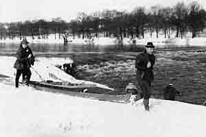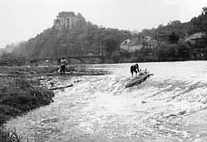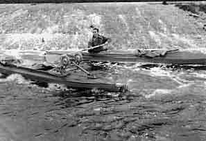 Dass die Überwindung eines Wehres mit dem Faltboot beschwerlich ist, zeigen die folgenden Fotodokumente.